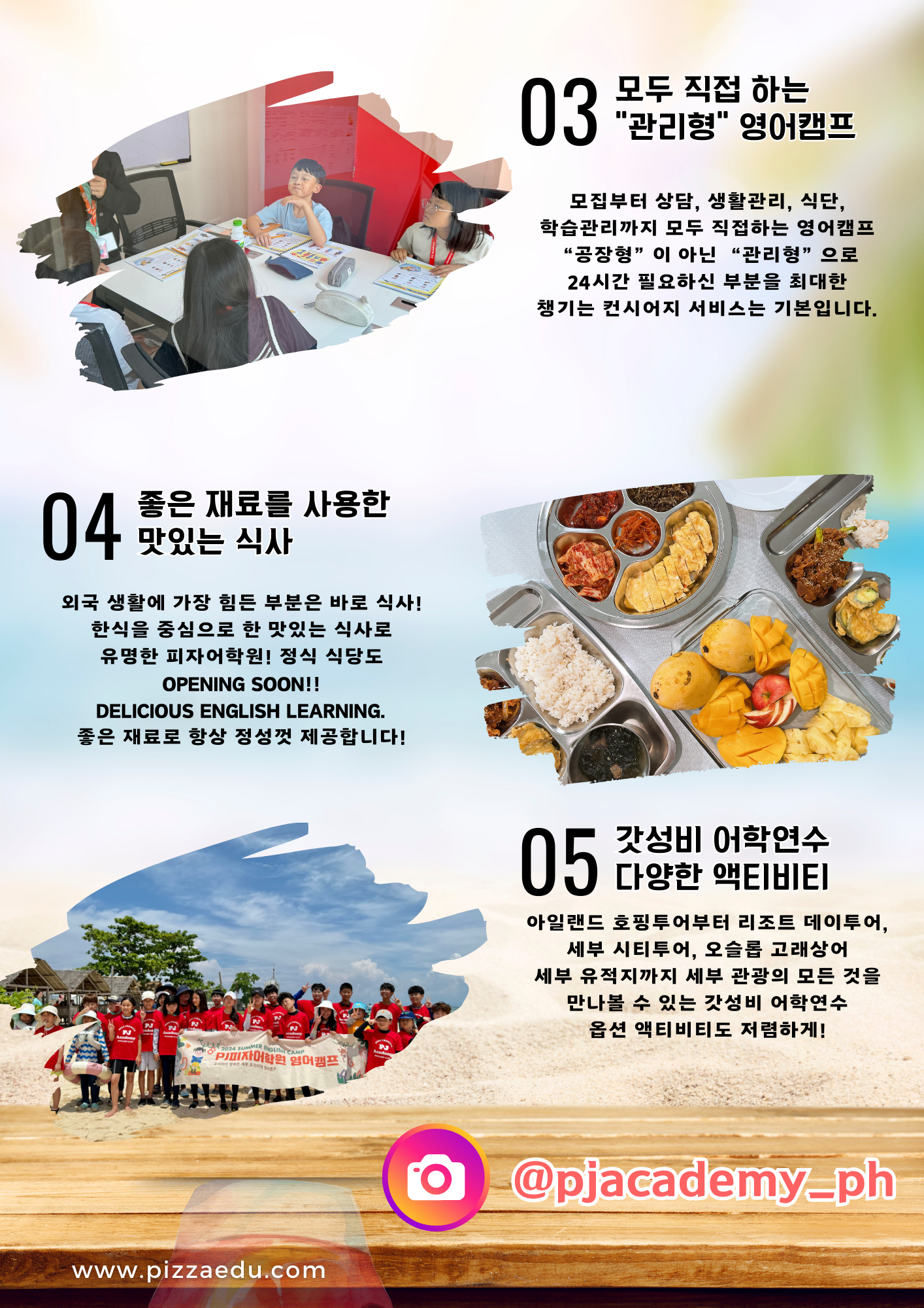 - 다만, 해당 기간 식사와 액티비티, 학원 프로그램은 별도 제공되지 않습니다.